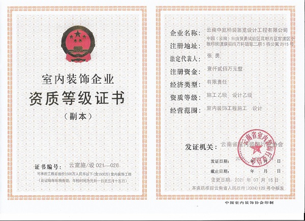 標簽:室內裝飾企業資質證書